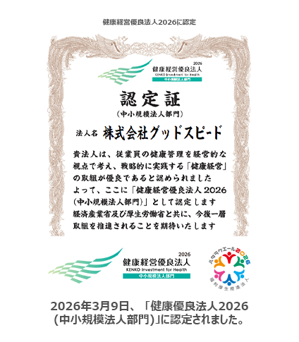 当社は、新車・中古車販売並びに安心・快適・楽しいカーライフの提供を通じて、当社と接するすべての人に、感謝・感動・感激を感じていただくことに、大きな価値観を持っています。そして、当社とお付き合いいただくことに心から満足いただき、末永く、私たちのサービスを利用していただけるよう取り組んでいます。安心・快適・楽しいカーライフの提供を行うのは、グッドスピードの従業員です。従業員の健康づくりは、企業活動の要であり、従業員が健康であってこそ、お客様に感謝・感動・感激を感じていただけるサービス、末永く利用していただけるサービスを提供できるという考えのもと、健康経営を推進しています。